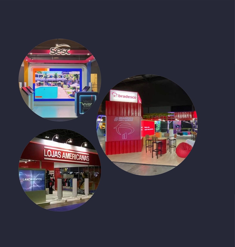 Descubra como nossos estandes exclusivos podem transformar sua presença em feiras e eventos. Aproveite soluções inovadoras que capturam a atenção e geram resultados reais. Entre em contato e Peça um orçamento Personalizado.